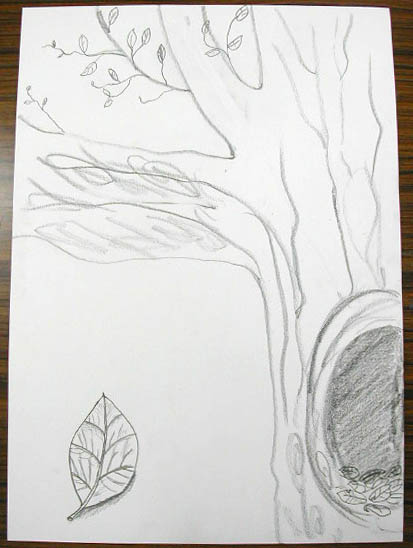 本当は、木の全体像を描いたら何か分かってしまうだろうから