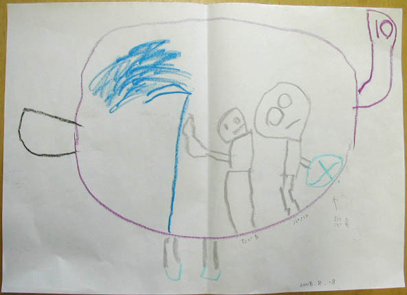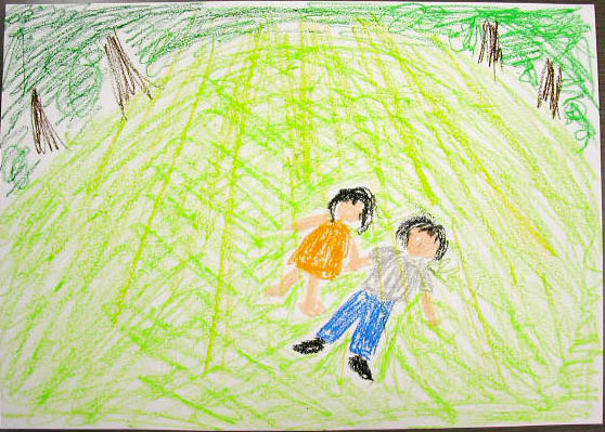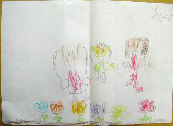右の子供さんは、自分が花畑にいる絵を描きました