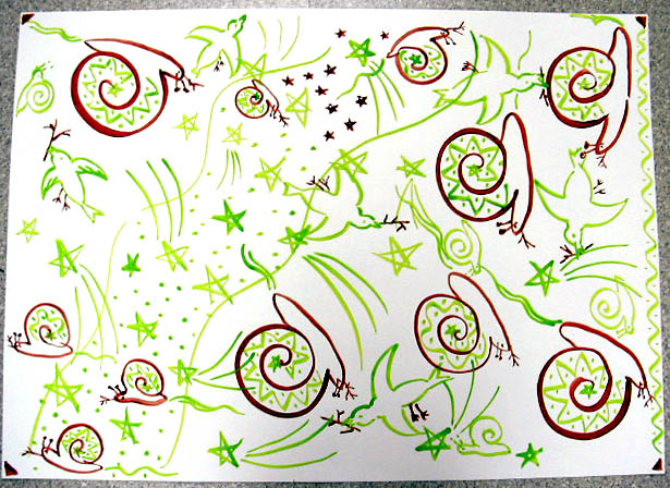 好きなように付け足したり、相手のモチーフを真似て描いたり・・・