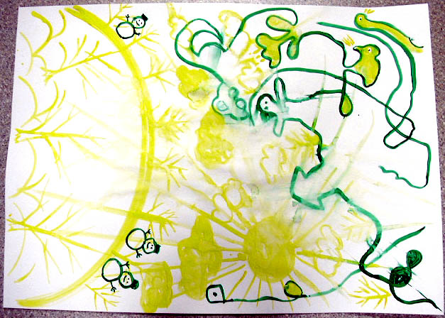二人で描いたらどうなるのって感じで、一枚の紙にふたりで自由に描いてもらいました(⌒-⌒)